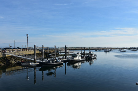 November 22, 2018 Moss Landing / CA / USA - Panoramic view of Moss Landing marina in Monterey Bay on a sunny day