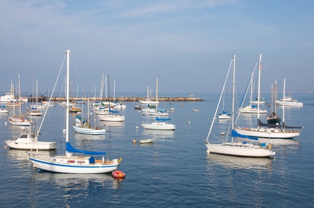 MONTEREY, CA, UNITED STATES - Jan 12, 2019: A port full of many ships under the cloudy sky in Monterey, California, USA