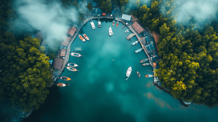 Generative AI : Aerial view of boats in Suadiye district on the Marmara Sea coast of the Asian side of Istanbul Turkey