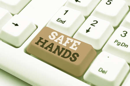 Sign displaying Safe Hands. Concept meaning Ensuring the sterility and cleanliness of the hands for decontamination Typing Program Functional Descriptions, Creating New Email Address