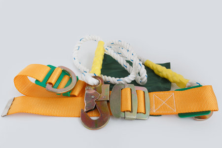 Straps Industrial safety equipment with hooks ,Protection in working at heights ,On white background