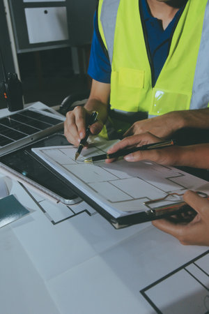 Business hand Engineers meeting to discuss the design of a residential project, teamwork Concept