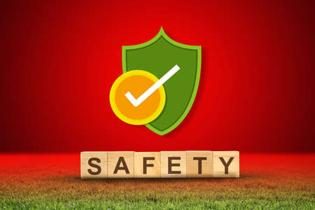 safety word written on wood block. safety text on wooden table for your desing, concept.