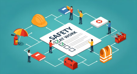 Safety work concept. Flat 3d isometric illustration of safety work concept.