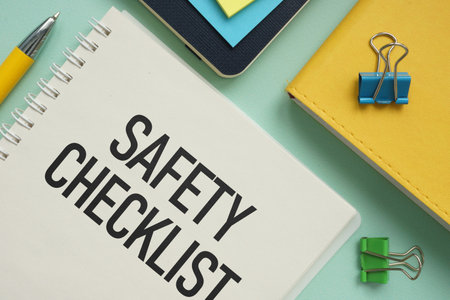 Safety Checklist Concept with Office Supplies and Notebook on Desk