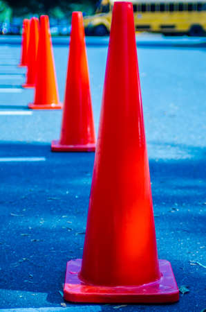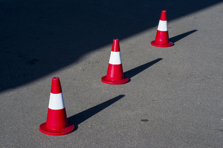 Traffic cones in driving school. Concept driving courses or driving licence training. Close up.