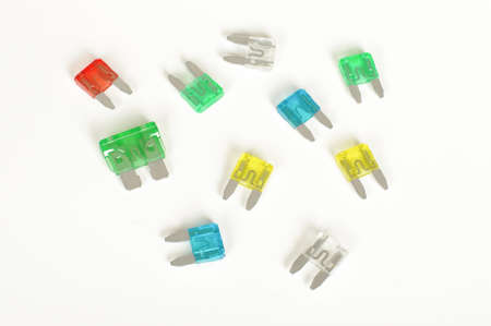Electrical automotive fuses for car on white background