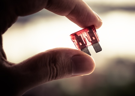 Blown fuse is being held with fingers