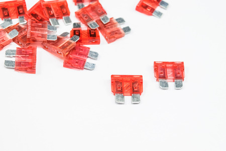 Fuse electric fuse miniature on white background.