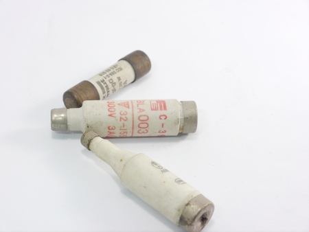 Fuse of electrical protection component isolated on white background.