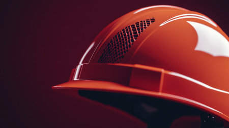 A closeup of a bright orange safety helmet featuring ventilation holes, ideal for construction and industrial environments, emphasizing worker safety and protection.