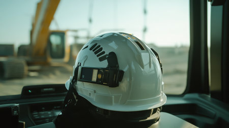 LIDAR scanner mounted on smart construction helmet resting on dashboard