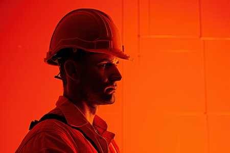 Ensuring worker safety with bright yellow hard hat and safety vest. Ideal for construction, engineering, and industrial themes needing a safety-first approach.