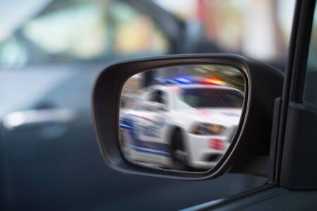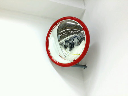 View of spherical viewing mirror for so-called dead zone. Driving safety concept.