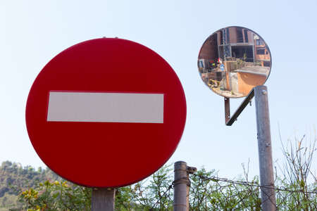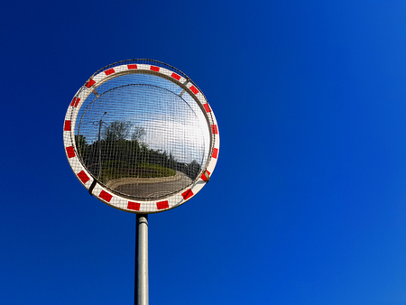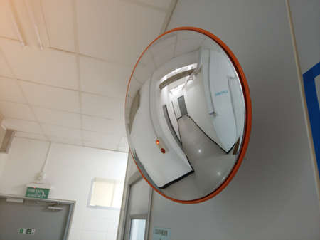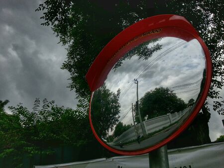 Convex mirror beside the curved road for safety driving. Reduce accident and beware the dangerous
