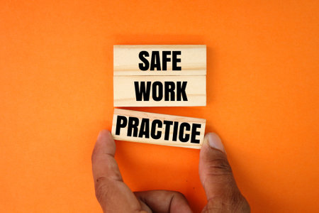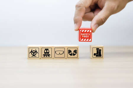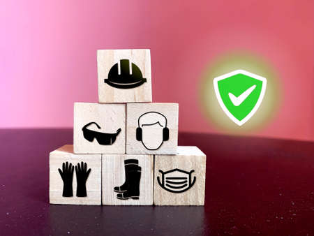wooden cubes with security icons. the concept of workplace safety Or Safety at work.