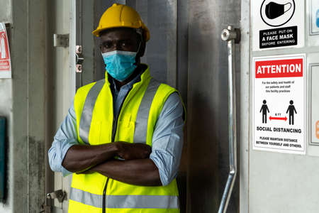 Factory workers with face mask protect from outbreak of Corona Virus Disease 2019 or COVID-19.