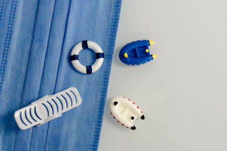 miniatures about relaxing on the beach and protection from viral and bacterial infection on vacation