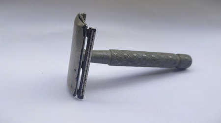 Vintage safety metal razor close up