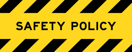 Yellow and black color with line striped label banner with word safety policy