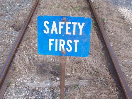 Safety First sign on caution strip