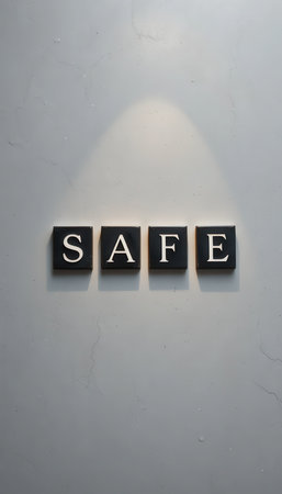 A modern display showcasing the word SAFE in bold letters against a neutral backdrop. This image conveys a sense of security and tranquility, ideal for decor and inspirational projects.