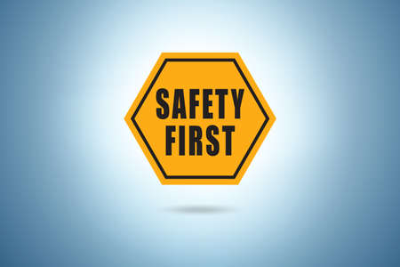 Yellow safety first sign. Style sign isolated on white background. vector illustration.