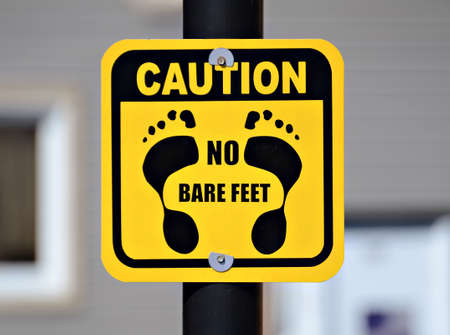 A sign at a boat dock to caution against going bare foot.