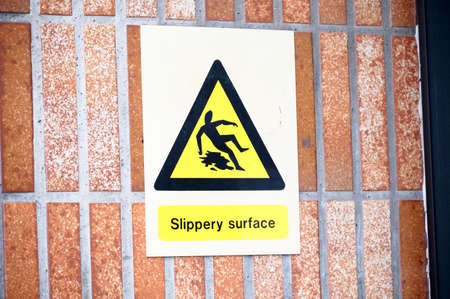 Slippery surface wall sign with yellow and black symbol