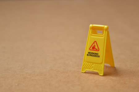 Working in progress sign isolated on a brown background. Copy space for the text.