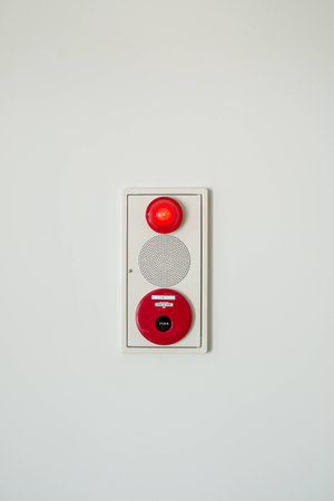 Fire alarm on the white wall.