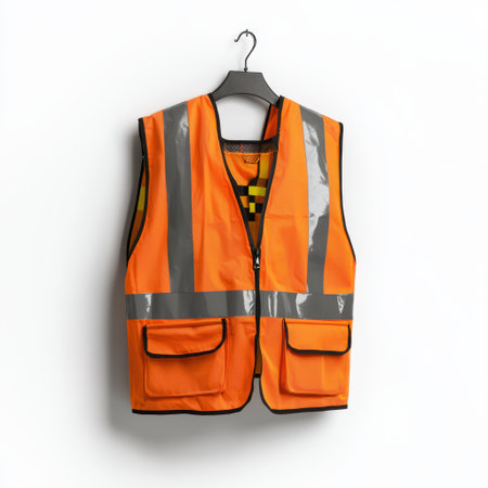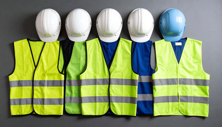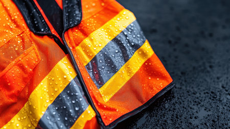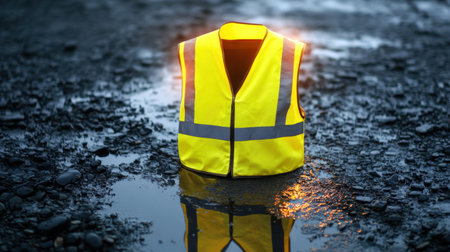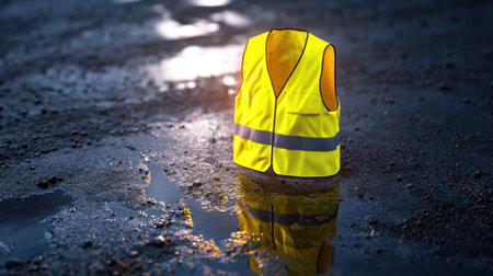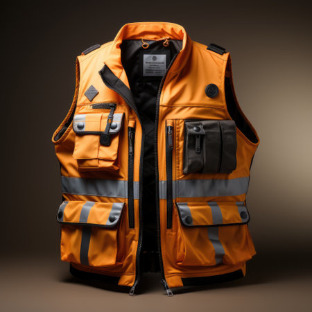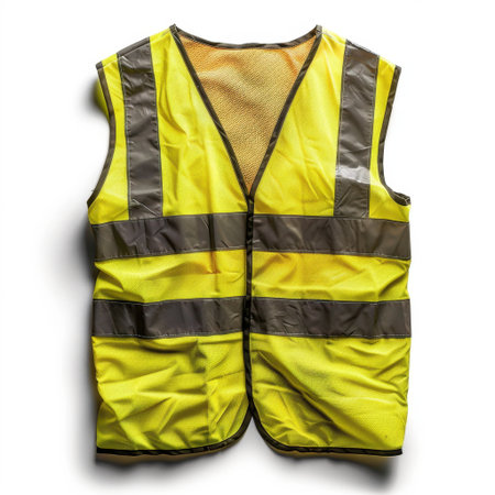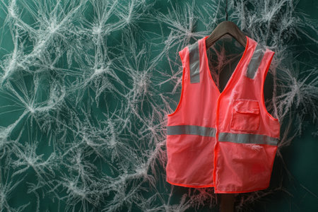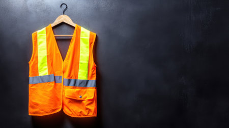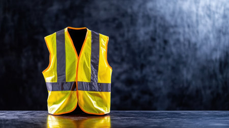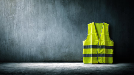 This image features a bright safety vest against a textured gray background, highlighting its importance in construction and outdoor settings, promoting safety and visibility.