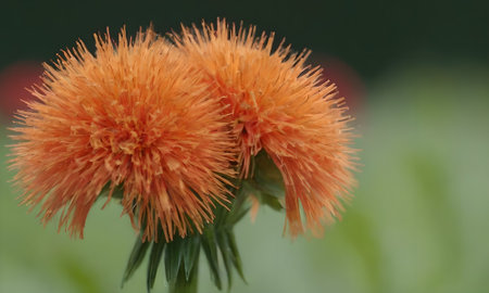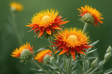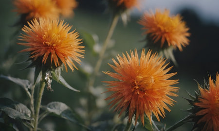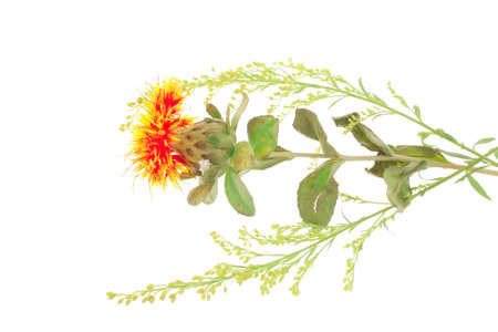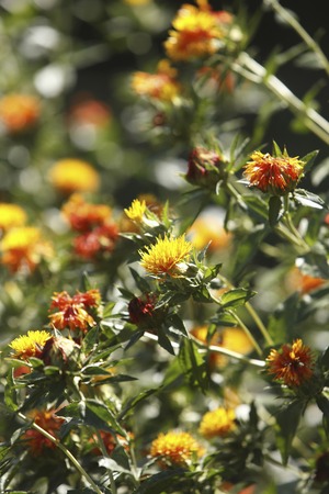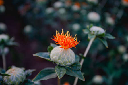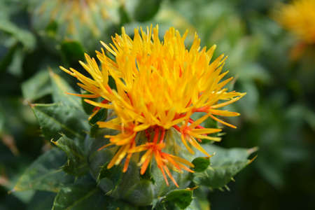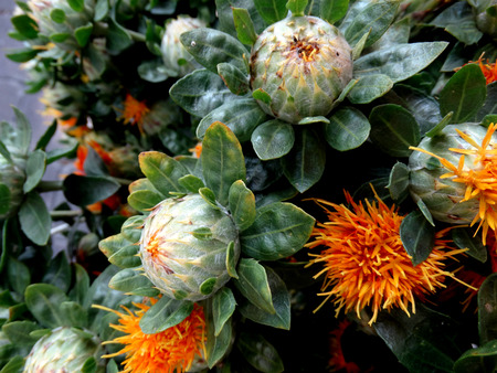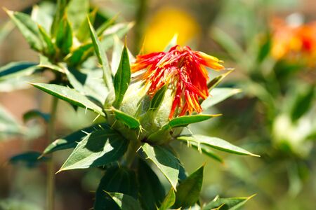 Safflower (Carthamus tinctorius,False saffron) has begun to bloom and buds of Safflowers in garden