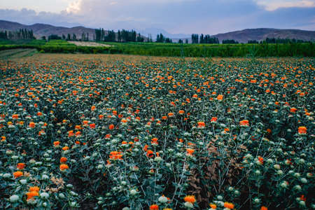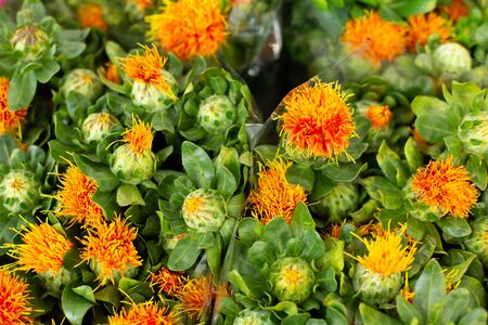 Orange Carthamus tinctorius. Wholesale floristic base, shop with flowers for Valentine's Day on February 14 or International Women's Day on March 8.