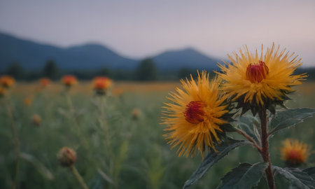 Yellow flower macro background carthamus tincorius family asteraceae high quality print