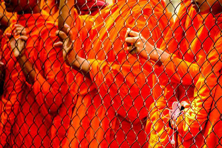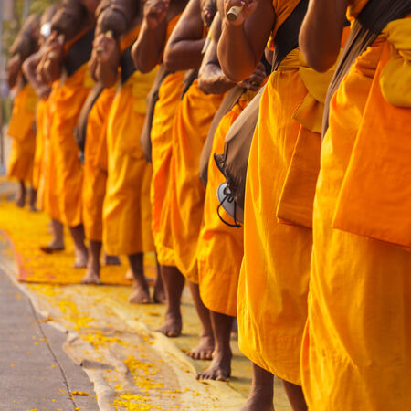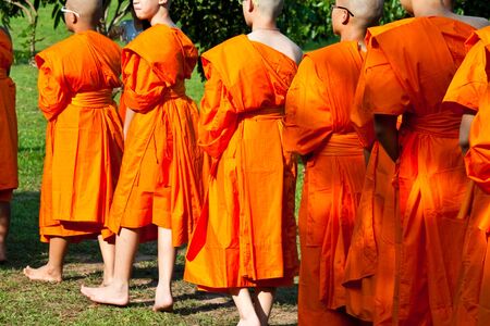 Bangkok, Thailand - January 31, 2016: Thai Buddhist young adult Monk Line up in Row and Waiting, Chinatown, Bangkok, Thailand.