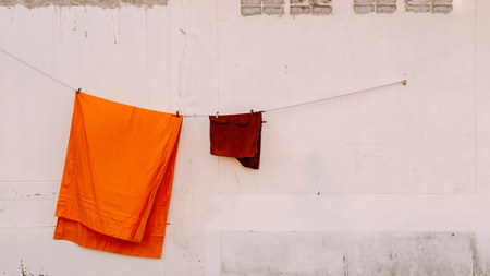 Abstract background, buddhist monk clothing hanging to dry on the line in the sun.