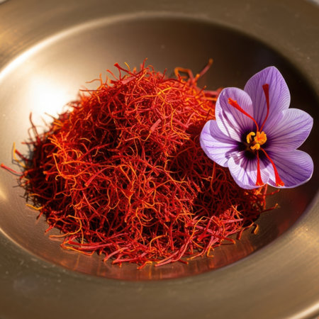 Dried saffron threads on a golden plate