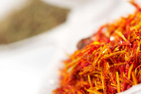 Macro shot of dried saffron. Shallow depth of field.
