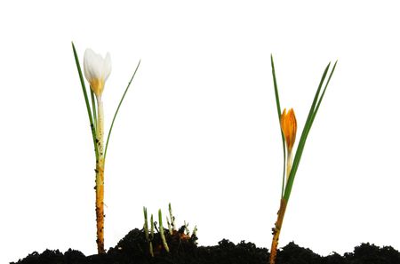 Beautiful saffron crocus flowers on a white background.