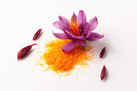 Saffron flower and saffron threads on a white background. The most expensive spice.