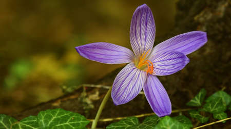 Blooming Saffron crocus flower (Crocus sativus) herbal