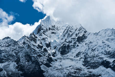 Thamserku Mountain peak in Himalayas, Nepal. Sagarmatha National Park