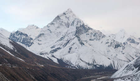 Ama Dablam mountain peak in cloudy day, Everest region, Nepal, Asia