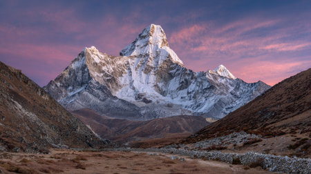 Mount Ama Dablam just before sunset. View from Kala Patthar, Everest National Park.