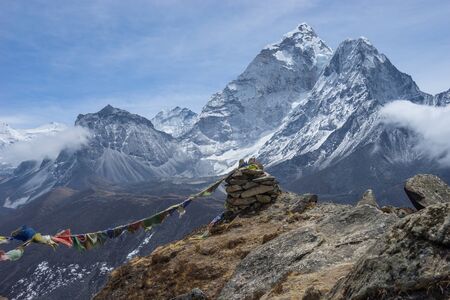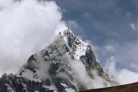 Landscape in the Everest National Park, Nepal. Mount Ama Dablam and clouds.
