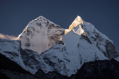 View of Cholatse mount in Himalaya mountains at sunset. Thokla pass, Khumbu valley, Everest region, Nepal.