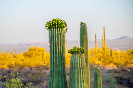Group of saguaro cacti standing prominently in the sanoran desert near phoenix arizona southwestern united states.