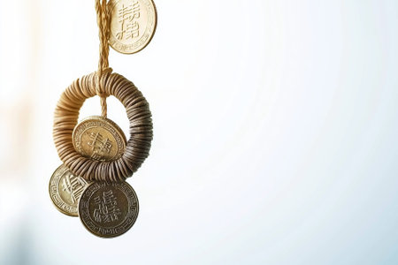 Chinese Feng Shu Wealth and Success Coins with Knot. Chinese New Year Decoration