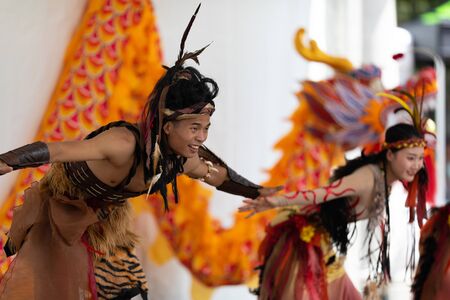 Columbus, Ohio, USA - May 26, 2019: Columbus Asian Festival, Franklin Park, Chinese Dancers wearing traditional clothing performing traditional dances.